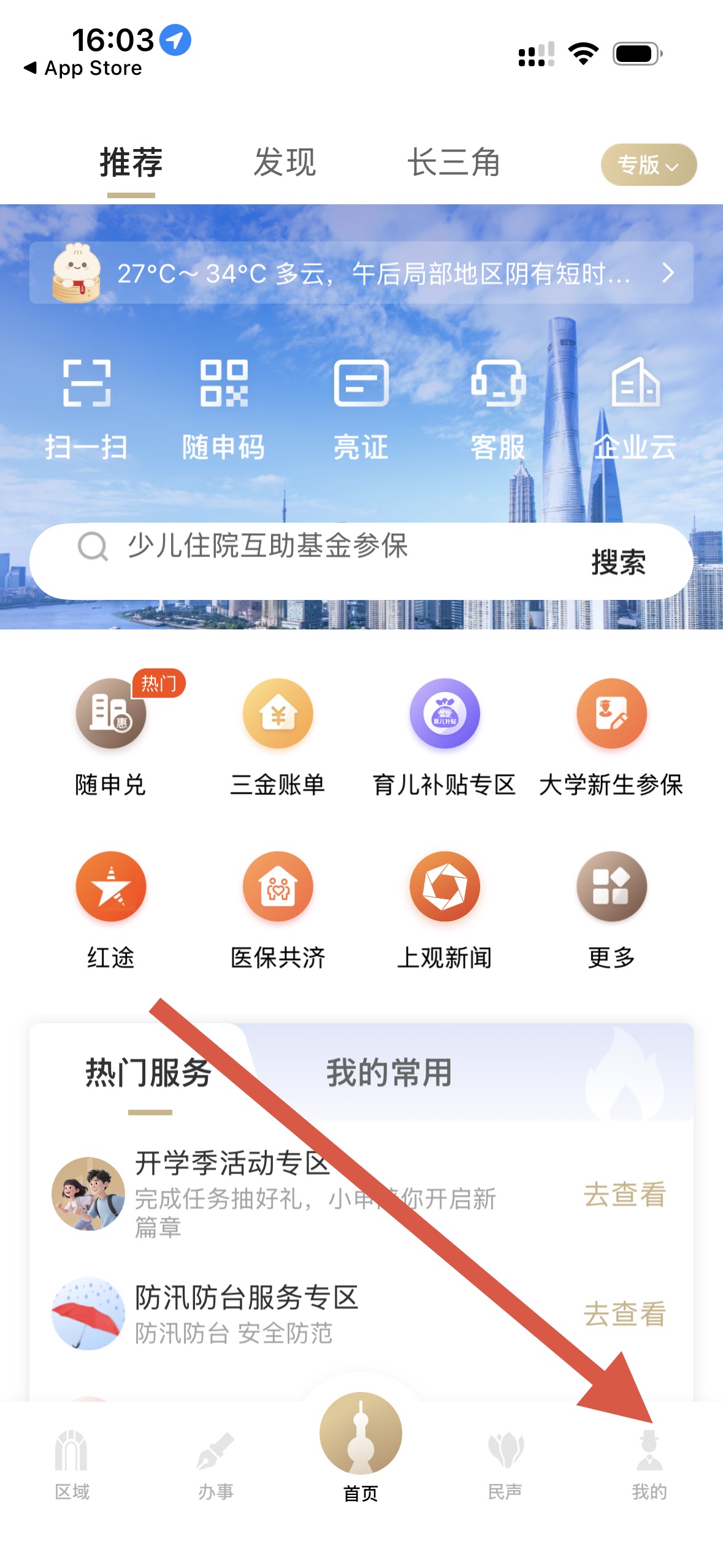 1、打開(kāi)隨申行APP,點(diǎn)擊底部我的。