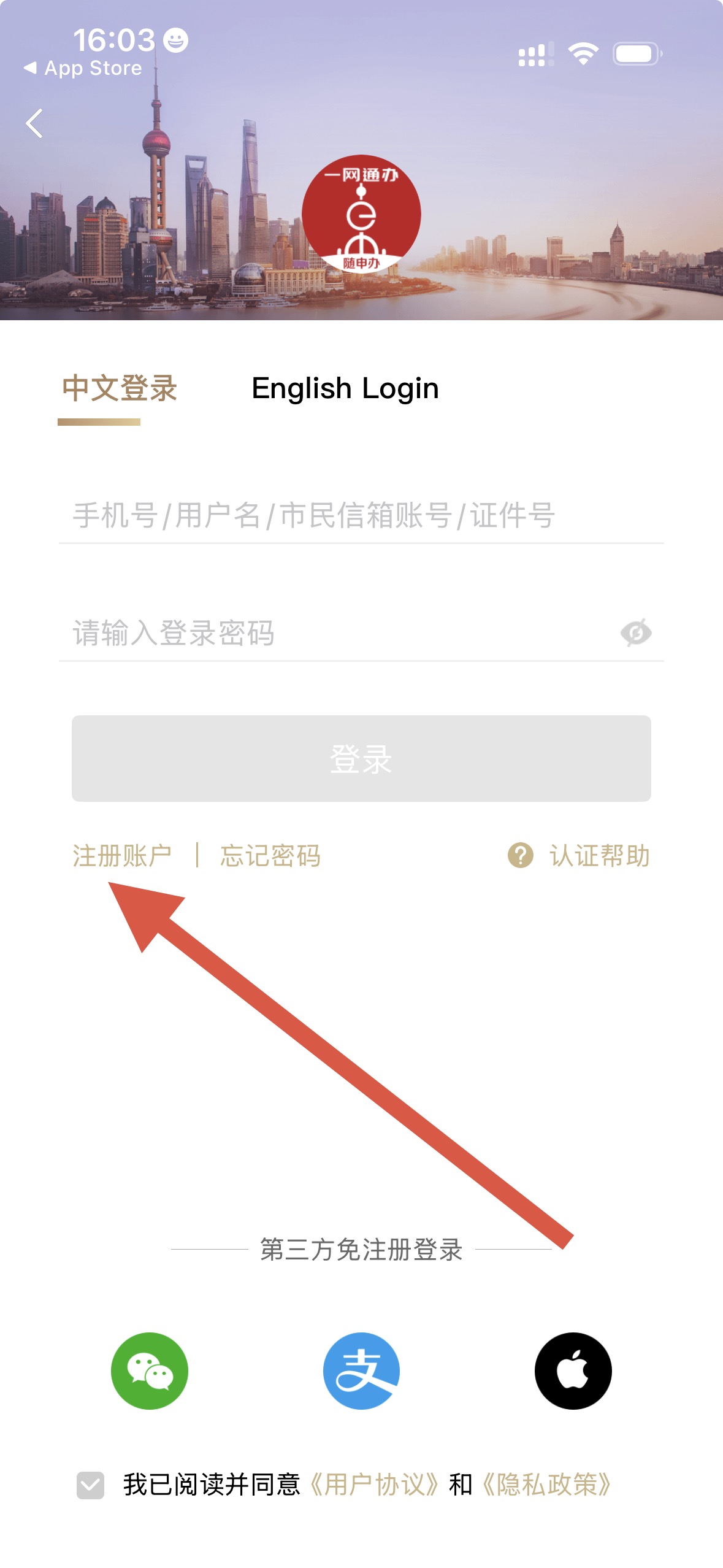 2、在我的頁(yè)面,點(diǎn)擊注冊(cè)賬戶。