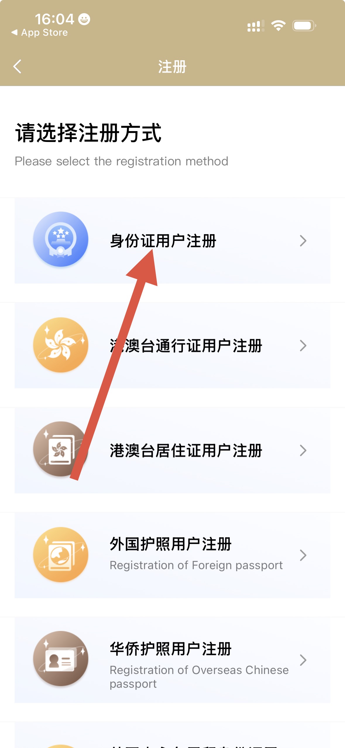 3、進(jìn)入注冊(cè)頁(yè)面,選擇身份證用戶注冊(cè)方式。