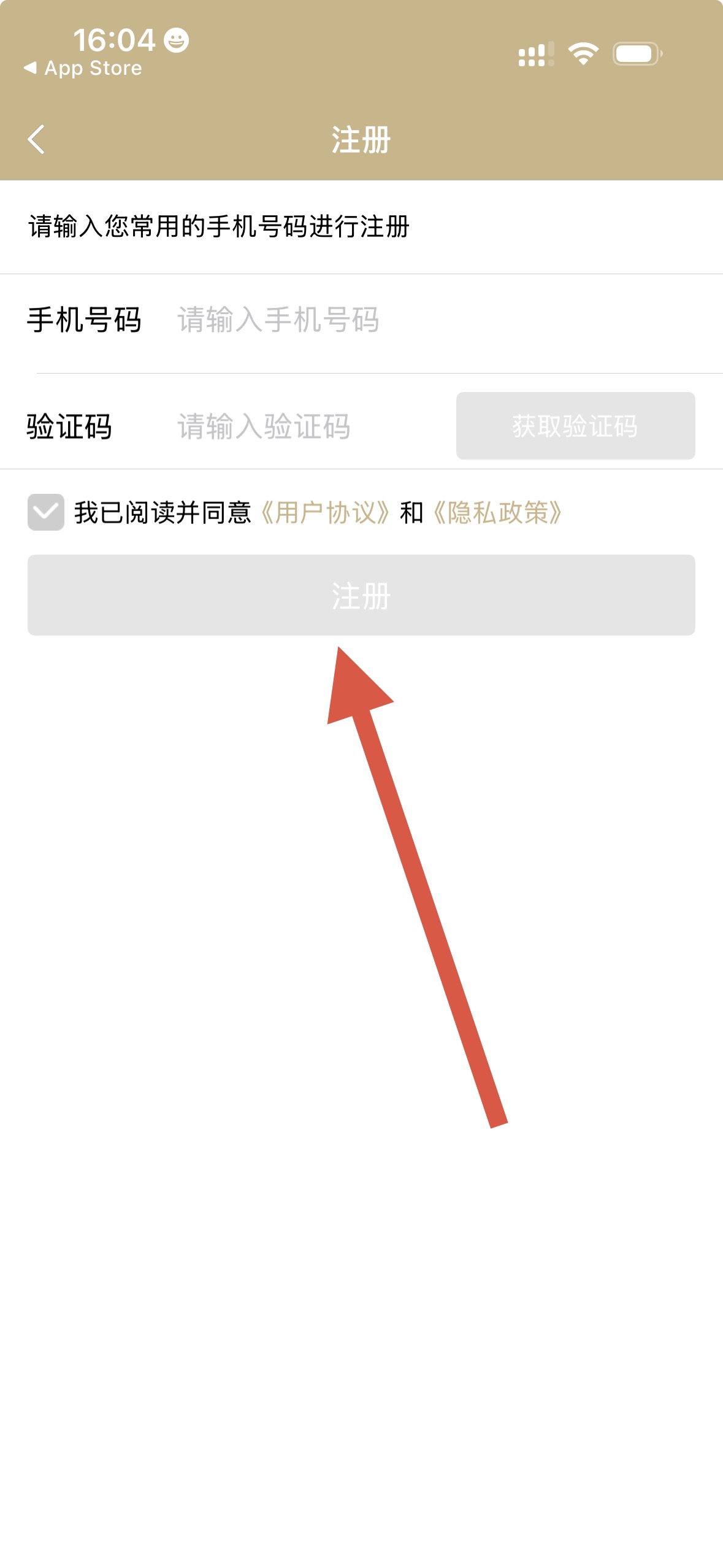 4、輸入常用手機(jī)號(hào),獲取并填寫(xiě)驗(yàn)證碼,勾選同意相關(guān)協(xié)議后,點(diǎn)擊注冊(cè)。