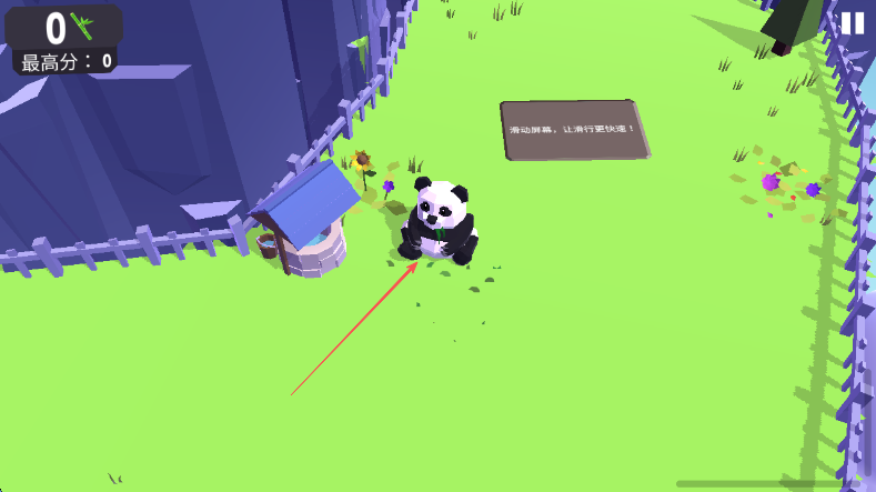 2、滑動屏幕,讓熊貓快速滑行,收集更多的物品來增加分?jǐn)?shù)。