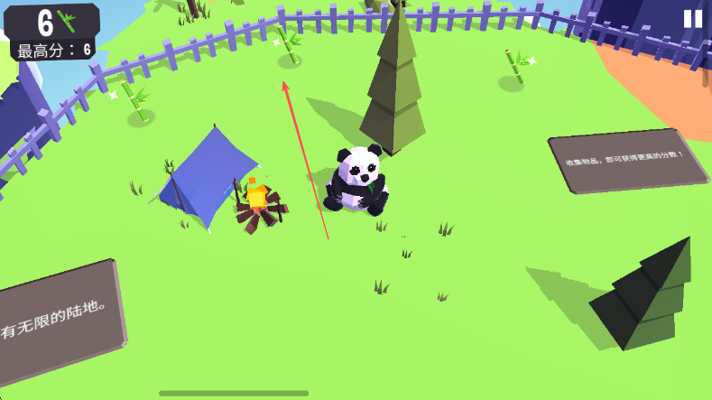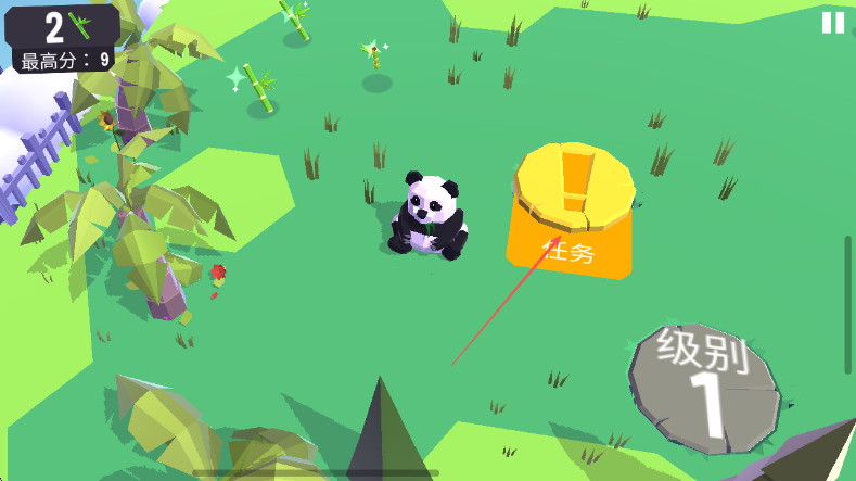 1、進(jìn)入游戲,操控熊貓角色,在浮空島上尋找可收集的物品,比如竹子。