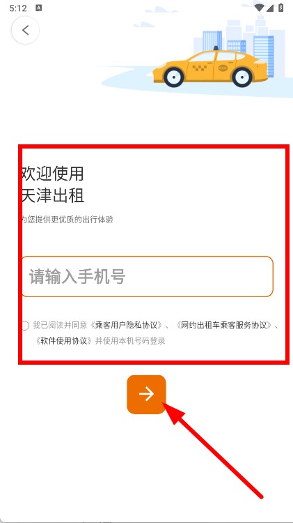 3、在登錄頁面輸入手機號,勾選同意相關(guān)協(xié)議后點擊箭頭按鈕。
