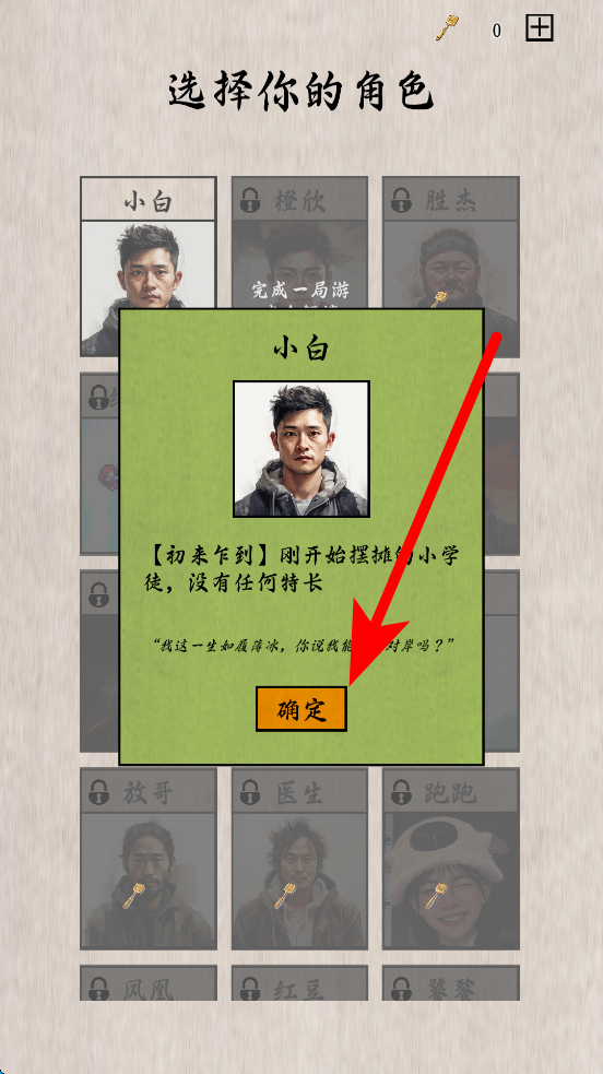 1、進(jìn)入后先選擇角色,不同角色有不同設(shè)定,小白是初來(lái)乍到的小學(xué)徒,確定角色后即可開(kāi)啟擺攤之旅,為后續(xù)經(jīng)營(yíng)奠定基礎(chǔ)。