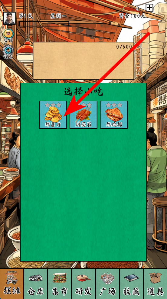 2、在經(jīng)營(yíng)過(guò)程中,可選擇小吃進(jìn)行售賣(mài),可以炸薯片選好炸薯片為小吃后就能開(kāi)展售賣(mài),獲取資金。