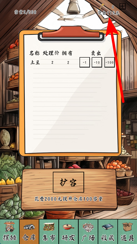 4、還要關(guān)注倉(cāng)庫(kù)管理,倉(cāng)庫(kù)有容量限制,當(dāng)容量不足時(shí),可花費(fèi)資金進(jìn)行擴(kuò)容,這樣能存儲(chǔ)更多用于制作小吃的材料等,保障經(jīng)營(yíng)順利。
