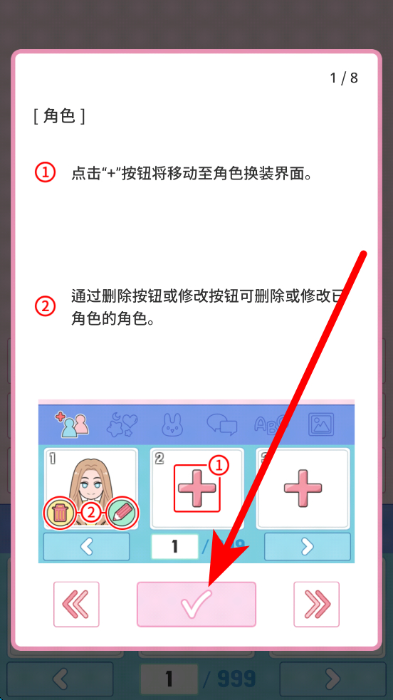 1、首先會有角色相關操作指引界面仔細查看后,點擊下方確認按鈕,即可進入到角色相關的操作界面,為后續(xù)裝扮等操作做好準備。