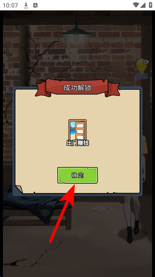 2、當(dāng)出現(xiàn)成功解鎖出門賺錢的彈窗時,點(diǎn)擊下方的確定按鈕,完成該功能的解鎖操作。