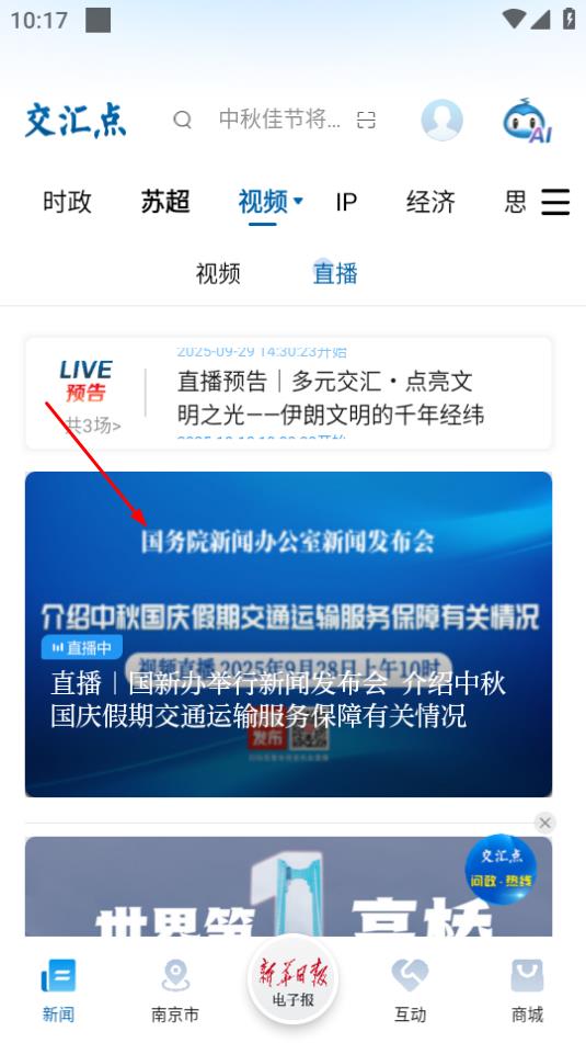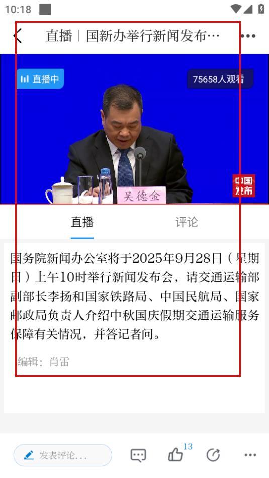3、在直播頁(yè)面,選擇正在直播的國(guó)新辦舉行新聞發(fā)布會(huì)直播內(nèi)容并點(diǎn)擊。