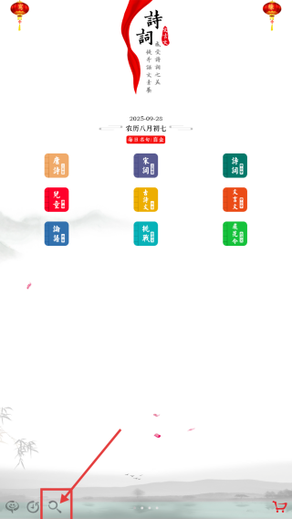 1、打開詩詞類應(yīng)用,點擊左下角搜索圖標(biāo),進入搜索頁面。