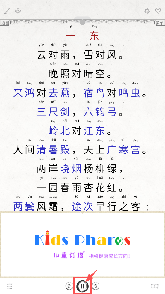 4、在詩詞詳情頁,點擊暫停按鈕,停止詩詞內(nèi)容的播放。