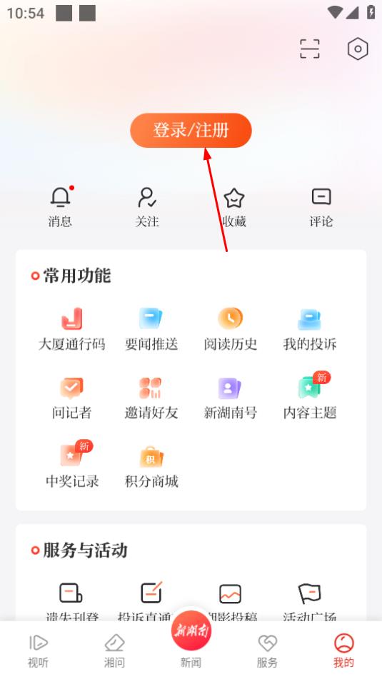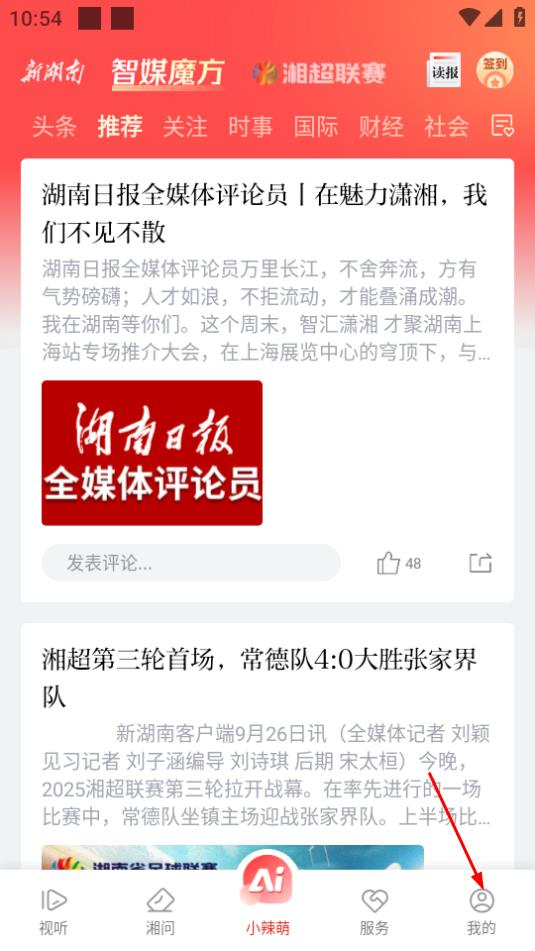 1、在新湖南,點(diǎn)擊頁(yè)面右下角的我的,進(jìn)入個(gè)人相關(guān)頁(yè)面。