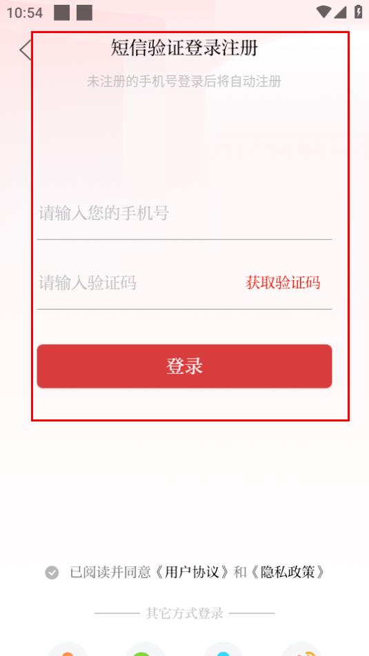 3、在登錄界面,選擇短信驗(yàn)證登錄方式進(jìn)入注冊(cè)頁(yè)面。