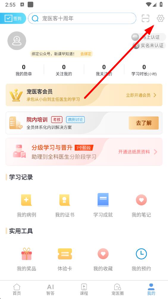 1、打開(kāi)寵醫(yī)客app,點(diǎn)擊底部導(dǎo)航欄最右側(cè)的我的選項(xiàng),進(jìn)入個(gè)人相關(guān)設(shè)置頁(yè)面。