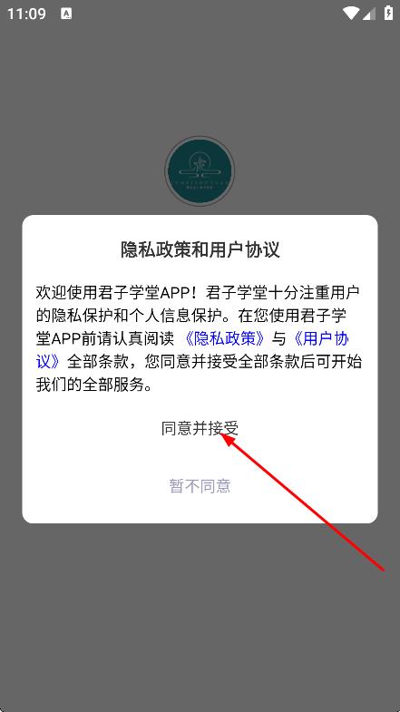 1、在隱私政策和用戶協(xié)議彈窗中,點擊同意并接】,進入主頁面。
