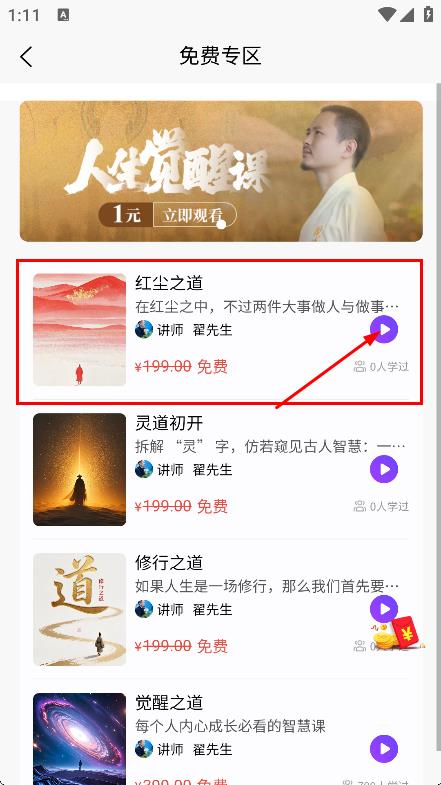 3、在免費專區(qū)頁面,選擇想要學習的課程,進入該課程播放頁面。