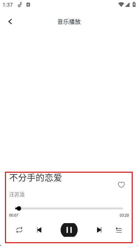 4、在音樂播放頁面,可進(jìn)行播放、暫停、調(diào)節(jié)音量等操作,聆聽不分手的戀愛。