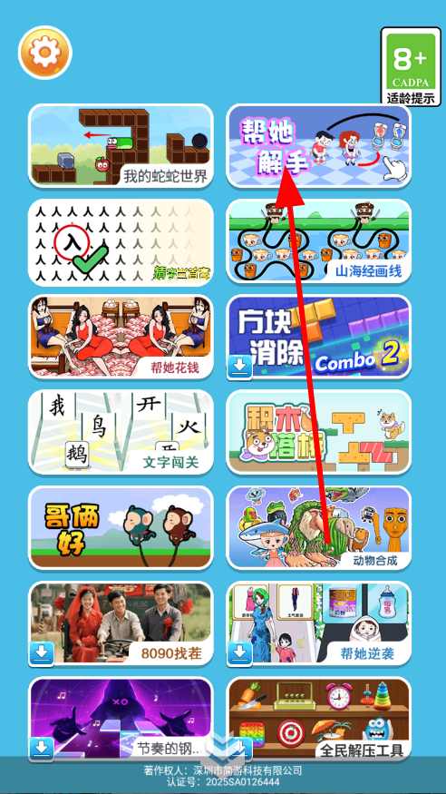 1、首先要選擇幫她解手玩法,進(jìn)入后即可開啟關(guān)卡挑戰(zhàn),在不同關(guān)卡中,需完成讓人物回到各自位置的任務(wù)。