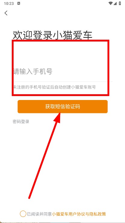 3、在登錄頁面輸入手機號,點擊獲取短信驗證碼。