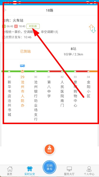 3、進(jìn)入18路公交詳情頁(yè),點(diǎn)擊時(shí)刻表。
