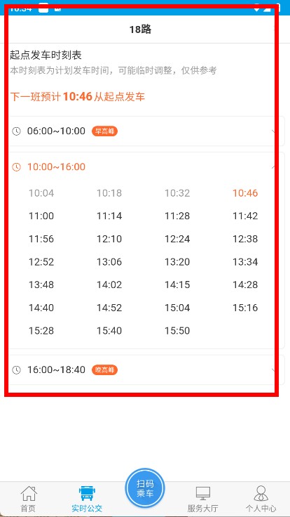 4、在時(shí)刻表頁(yè)面,查看該公交線路的發(fā)車時(shí)間安排。