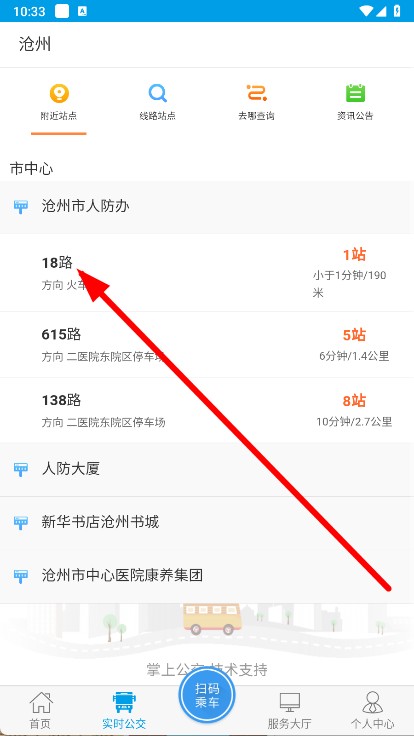2、在實(shí)時(shí)公交頁(yè)面,選擇要查詢的公交線路。