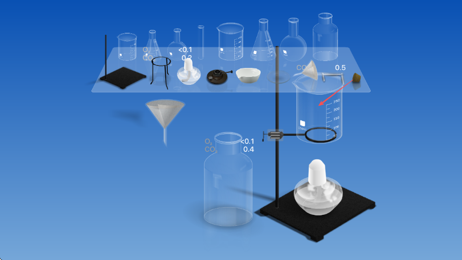 1、基礎實驗操作:從器材庫拖拽所需器材到實驗臺,按步驟添加化學材料,通過點擊或滑動操作完成攪拌、加熱、過濾等動作,觀察并記錄反應過程中的每一處細節(jié)。