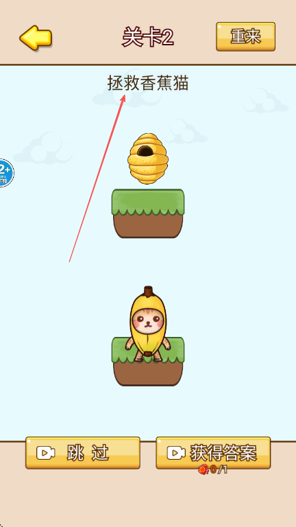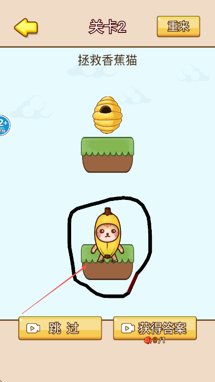 1、進入關卡2,明確任務為拯救香蕉貓,思考劃線策略保護它。