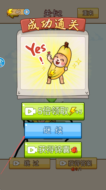 4、成功保護香蕉貓后,點擊繼續(xù)按鈕,進入下一關挑戰(zhàn)。
