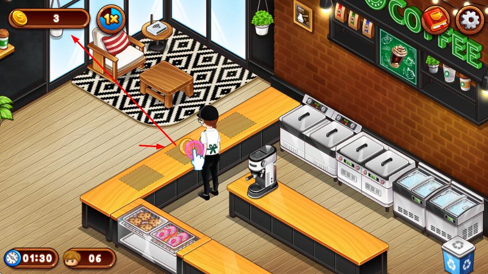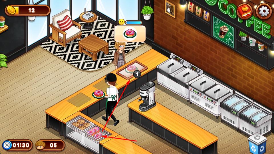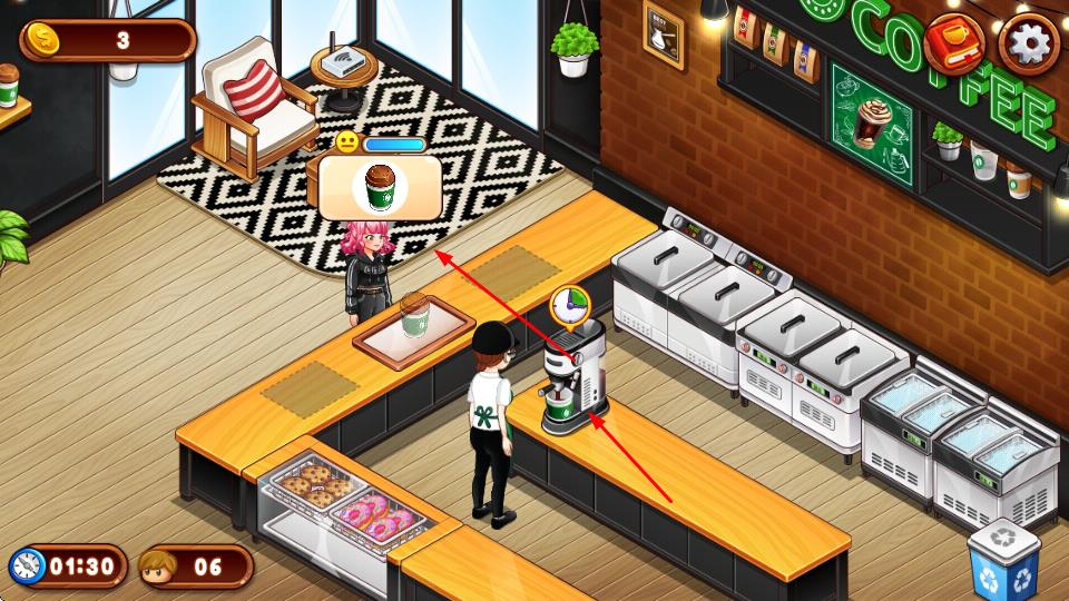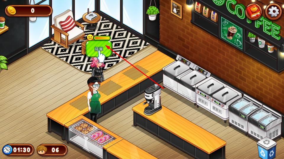 4、將制作好的食品和飲品送到顧客手中,完成訂單,獲取金幣等獎(jiǎng)勵(lì),積累資金用于咖啡店的升級(jí)。