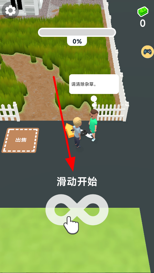 1、新手玩家開始體驗(yàn),首先滑動(dòng)開始按鈕,開啟割草任務(wù),進(jìn)入到割草的操作階段,為后續(xù)獲取資源做準(zhǔn)備。