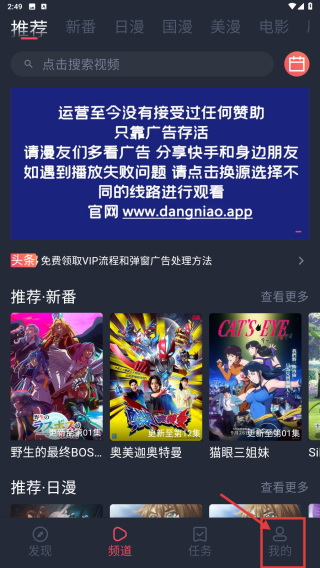1、打開動(dòng)漫類應(yīng)用,點(diǎn)擊底部我的選項(xiàng),進(jìn)入個(gè)人中心頁面。