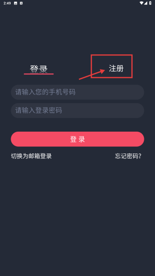 3、在賬號(hào)操作界面,點(diǎn)擊注冊(cè)標(biāo)簽,切換至注冊(cè)頁面。
