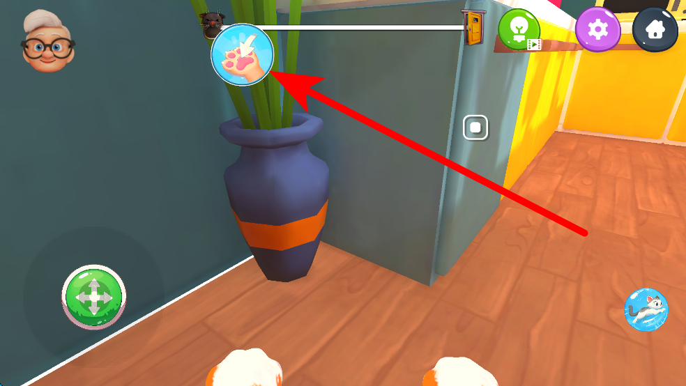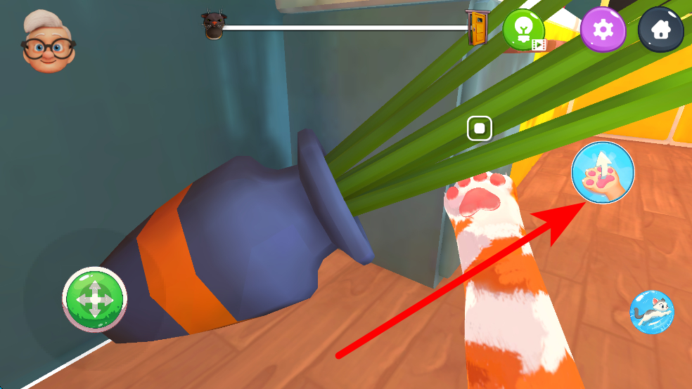 2、當靠近像花瓶這類物品時,點擊相應(yīng)的操作按鈕,貓咪就會進行搞怪動作,將花瓶推倒,體驗搞怪的樂趣。