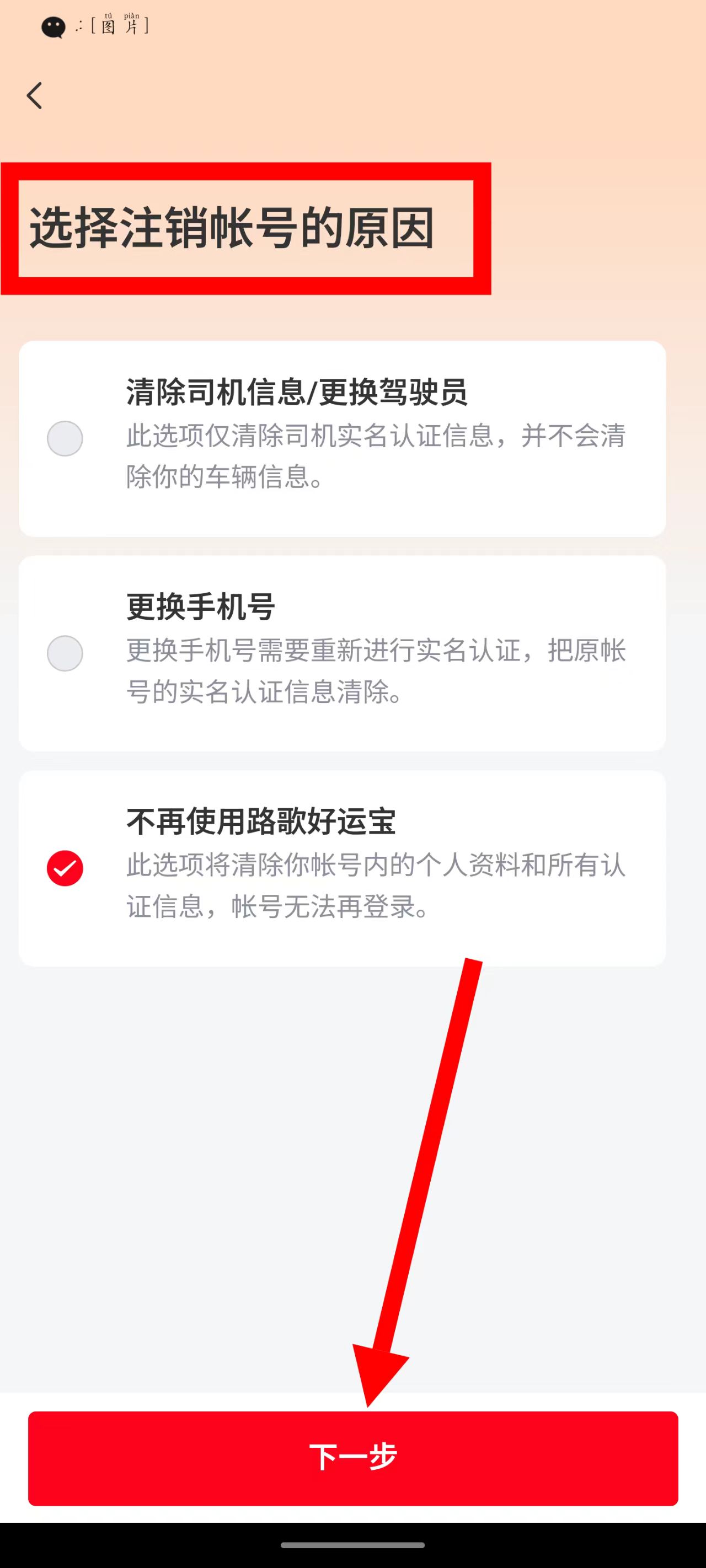 4、選擇注銷原因,點(diǎn)擊下一步,按提示完成注銷操作。