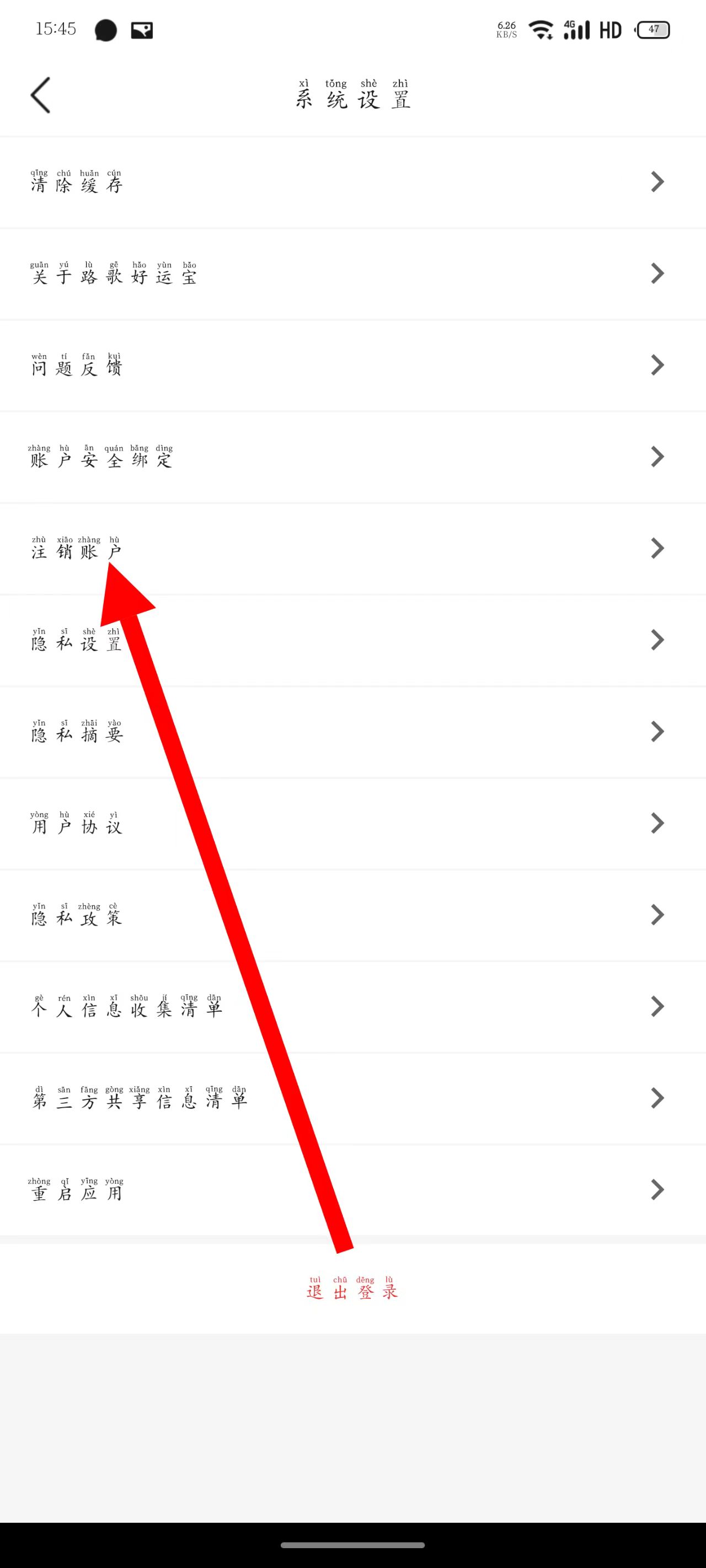 3、進(jìn)入系統(tǒng)設(shè)置頁面,點(diǎn)擊注銷賬戶。