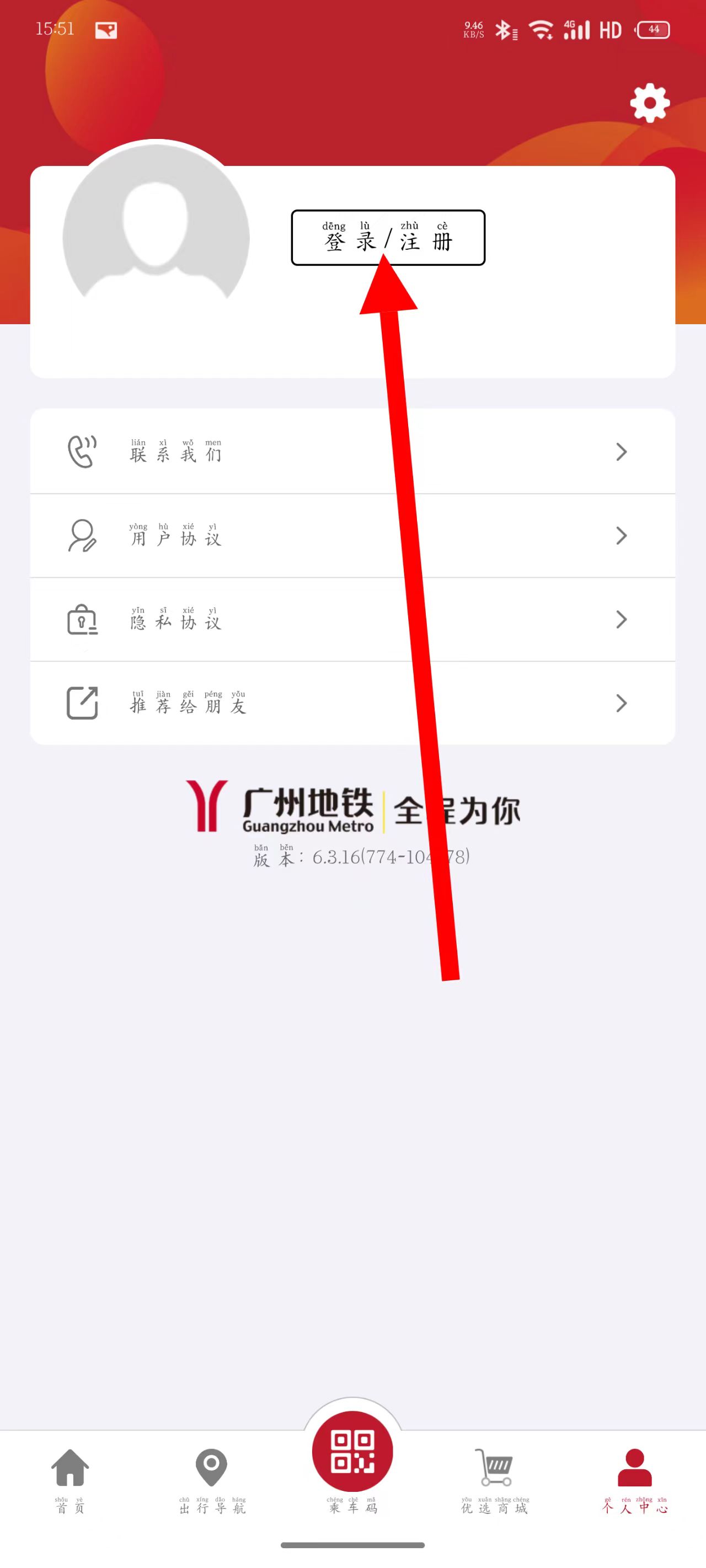 3、在個(gè)人中心頁面,點(diǎn)擊登錄注冊(cè)。