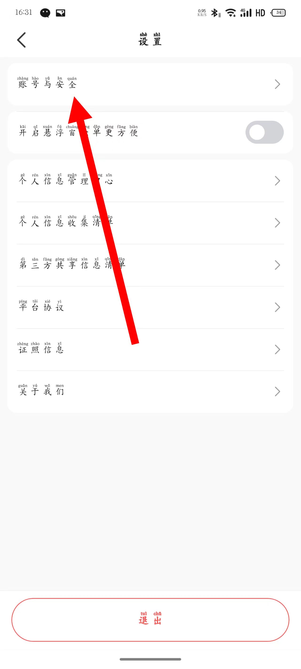 3、進入設(shè)置頁面后,點擊賬號與安全。