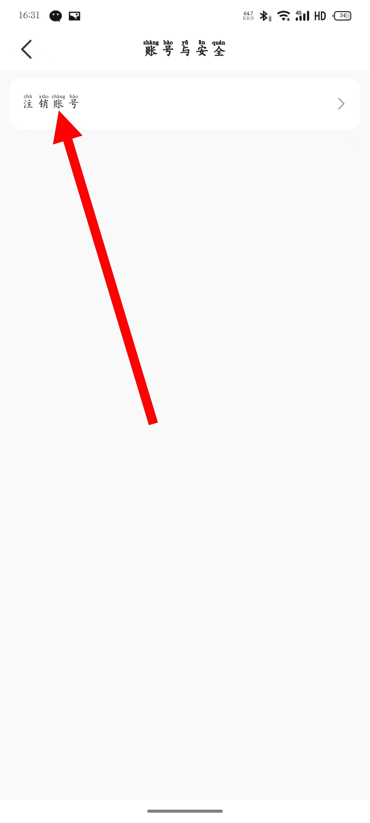 4、在賬號與安全頁面,點擊注銷賬號。