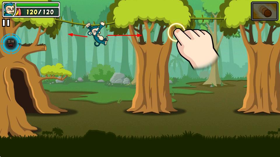 1、操控猴子在森林場景中移動,可利用藤蔓等在樹木間穿梭,探索不同區(qū)域。