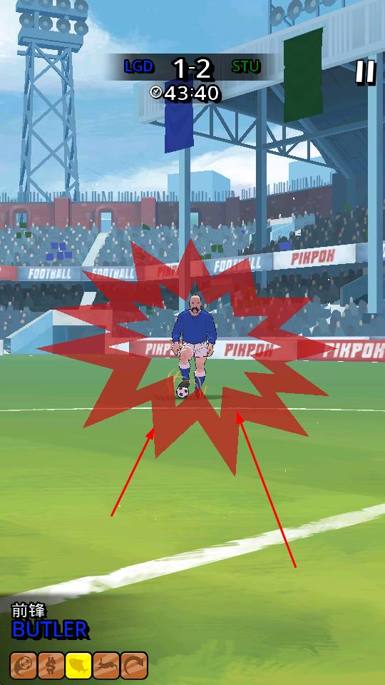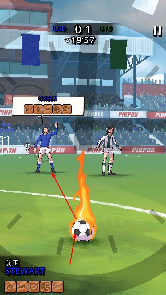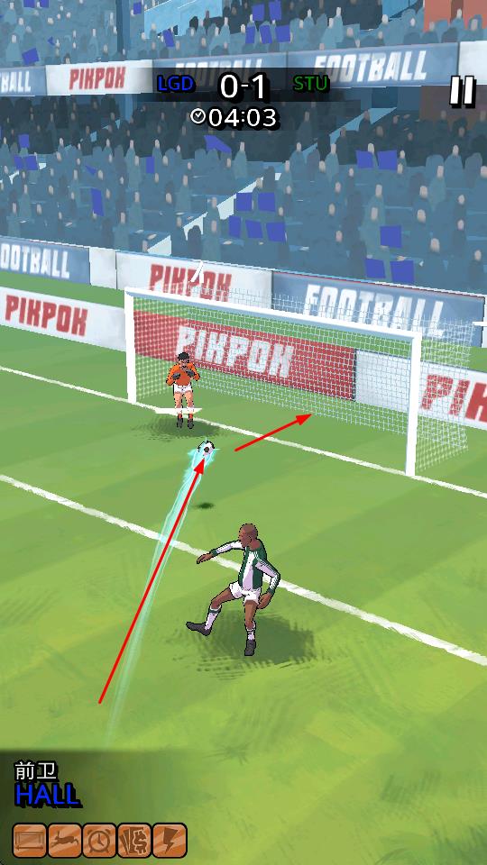3、當有射門機會時,瞄準球門方向,將足球射向球門,嘗試攻破對方球門得分。