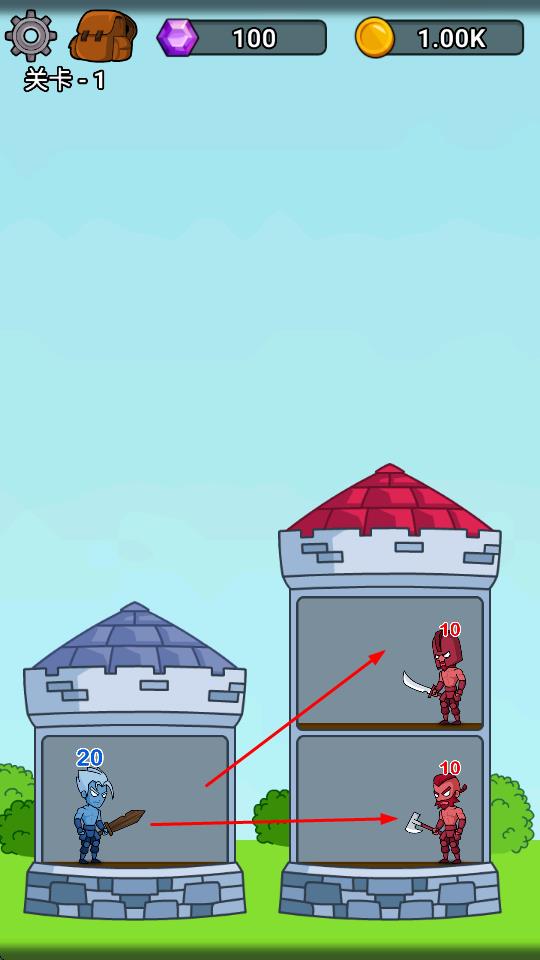 1、在關(guān)卡中,操控己方角色,與敵方塔樓中的敵人進行對戰(zhàn),通過攻擊敵人來推進游戲。