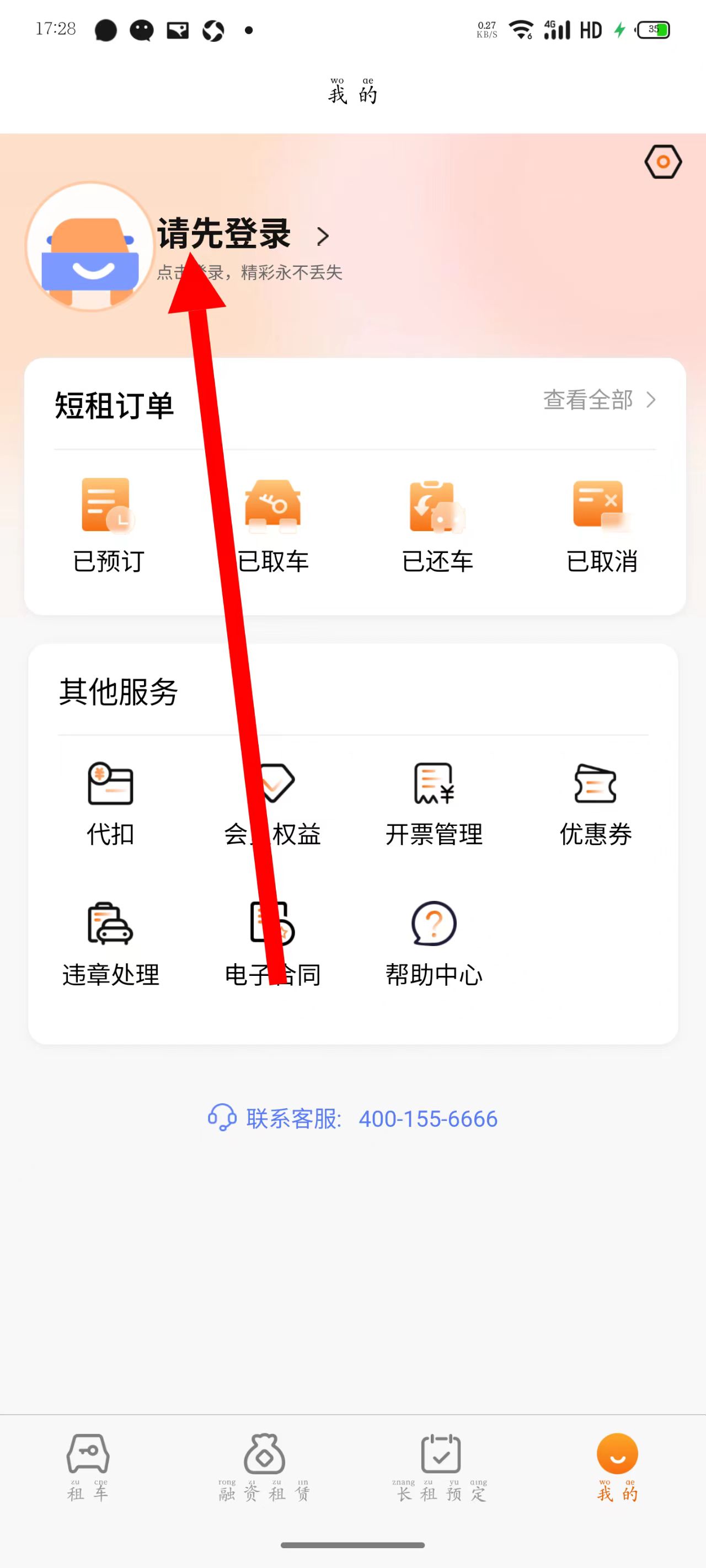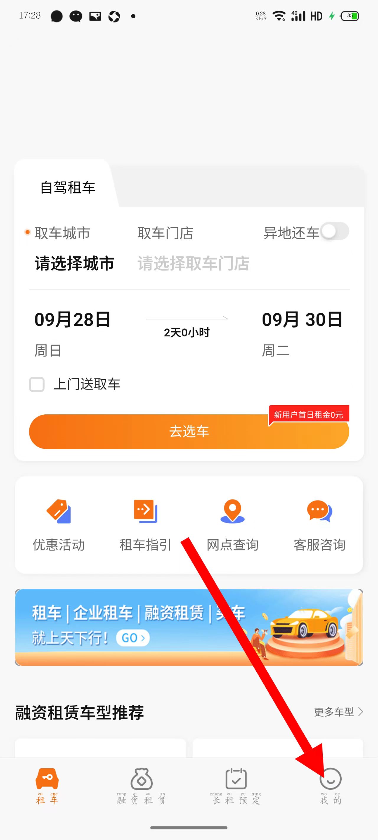 1、打開天下行租車,點擊底部我的。