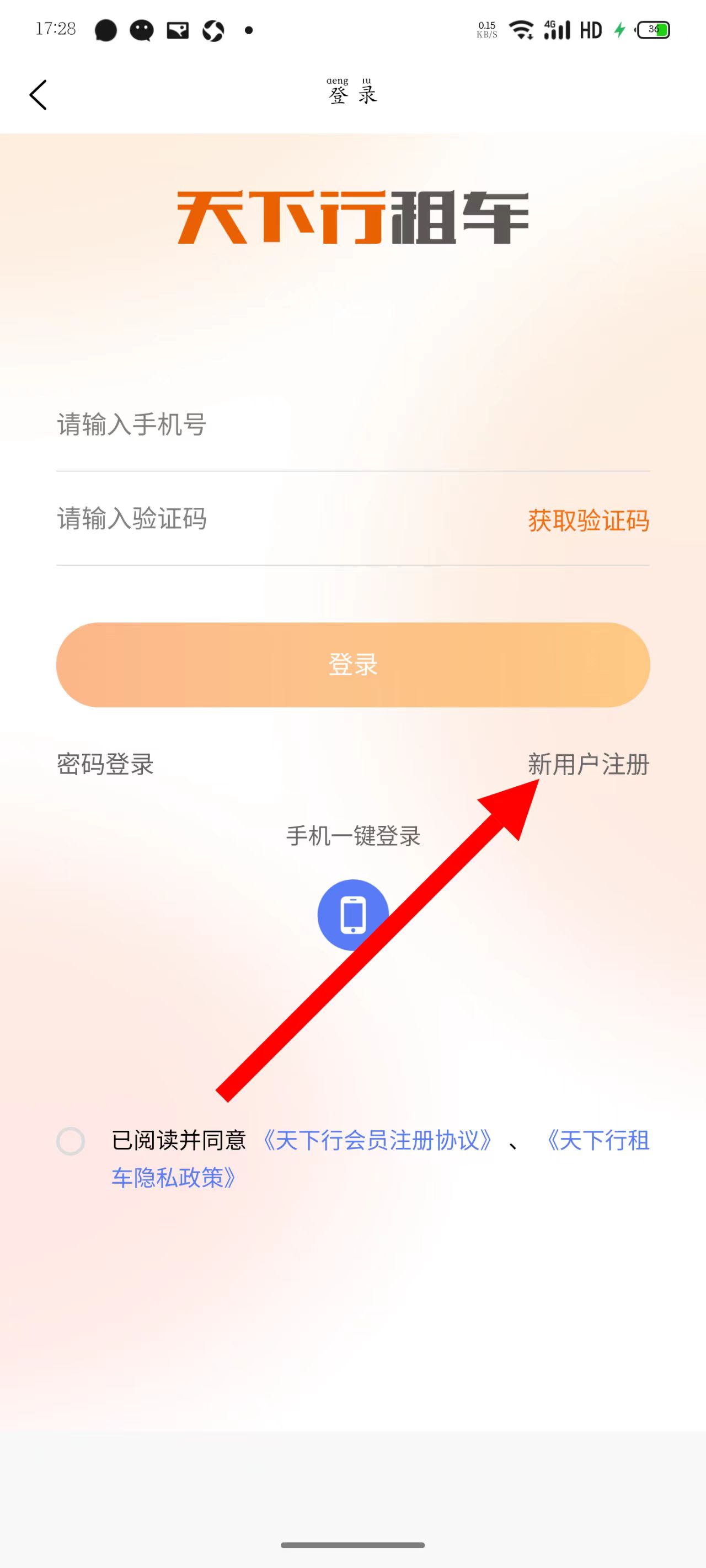 3、在登錄頁面,點擊新用戶注冊。