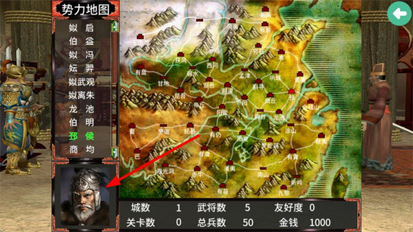2、查看勢(shì)力地圖,了解己方勢(shì)力的城數(shù)、武將數(shù)等信息,可清晰掌握戰(zhàn)略布局,為發(fā)展內(nèi)政制定計(jì)劃。