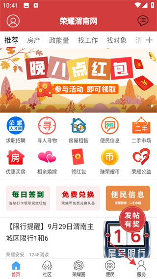 榮耀渭南網(wǎng)是陜西地區(qū)極具人氣的網(wǎng)絡(luò)社區(qū)論壇應(yīng)用,尤其深受渭南及周邊網(wǎng)民喜愛(ài),每日活躍用戶達(dá)30萬(wàn)之多,它以“互聯(lián)網(wǎng)社區(qū)+媒體+資訊”為核心定位,覆蓋消費(fèi)、資訊、社交等多個(gè)生活領(lǐng)域,既能滿足用戶求職招聘、尋人尋物、房屋租售、同城交友等實(shí)用需求,也能提供新聞資訊瀏覽、趣味帖子互動(dòng)等休閑功能。