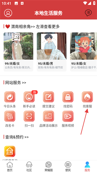 2、在本地生活服務(wù)頁(yè)面,點(diǎn)擊找客服,進(jìn)入客服相關(guān)頁(yè)面。