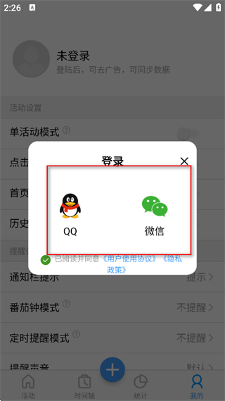 4、在登錄方式選擇彈窗中,選擇QQ或微信,進(jìn)行登錄操作。
