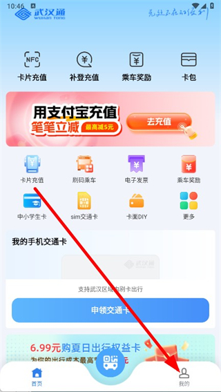 1、打開我的武漢通,點(diǎn)擊底部我的。