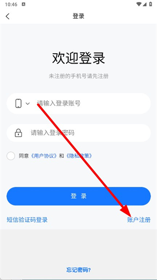 3、在登錄頁面,點(diǎn)擊賬戶注冊(cè)。